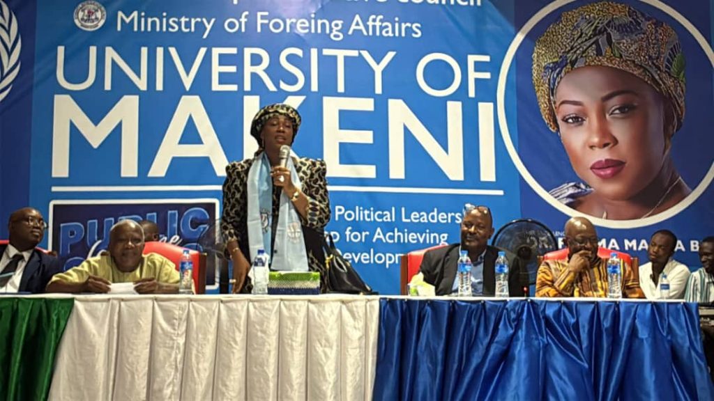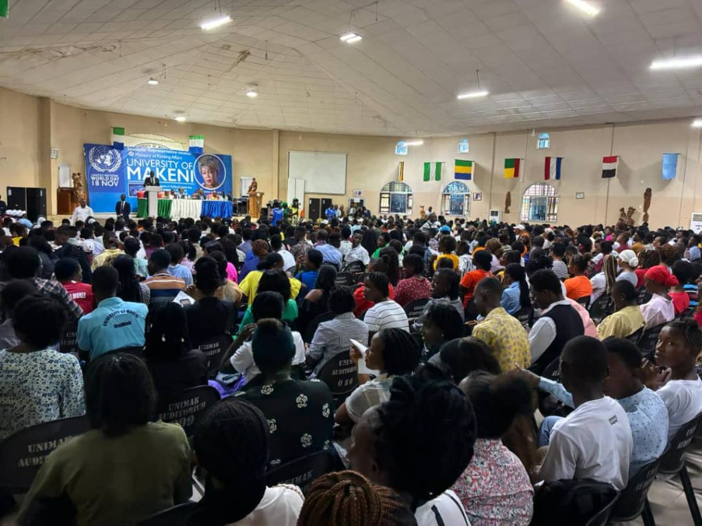 First Lady of Sierra Leone, Fatima Maada Bio, delivered a powerful public lecture at the University of Makeni (UNIMAK), emphasizing that feminism is a cornerstone for sustainable development and national progress. Welcomed by key figures including Registrar Foday Bangura and Resident Minister Ibrahim Jalloh, the First Lady was lauded for her impactful leadership, characterized by purpose, courage, and empathy. The lecture, introduced by Master’s student Dadida Jalloh, was celebrated as a contribution to the intellectual development of Sierra Leone. In a clear message of neutrality, UNIMAK leadership stressed that the institution provides a neutral ground for dialogue, free from political affiliation, aiming to foster respect and equality within the academic landscape.